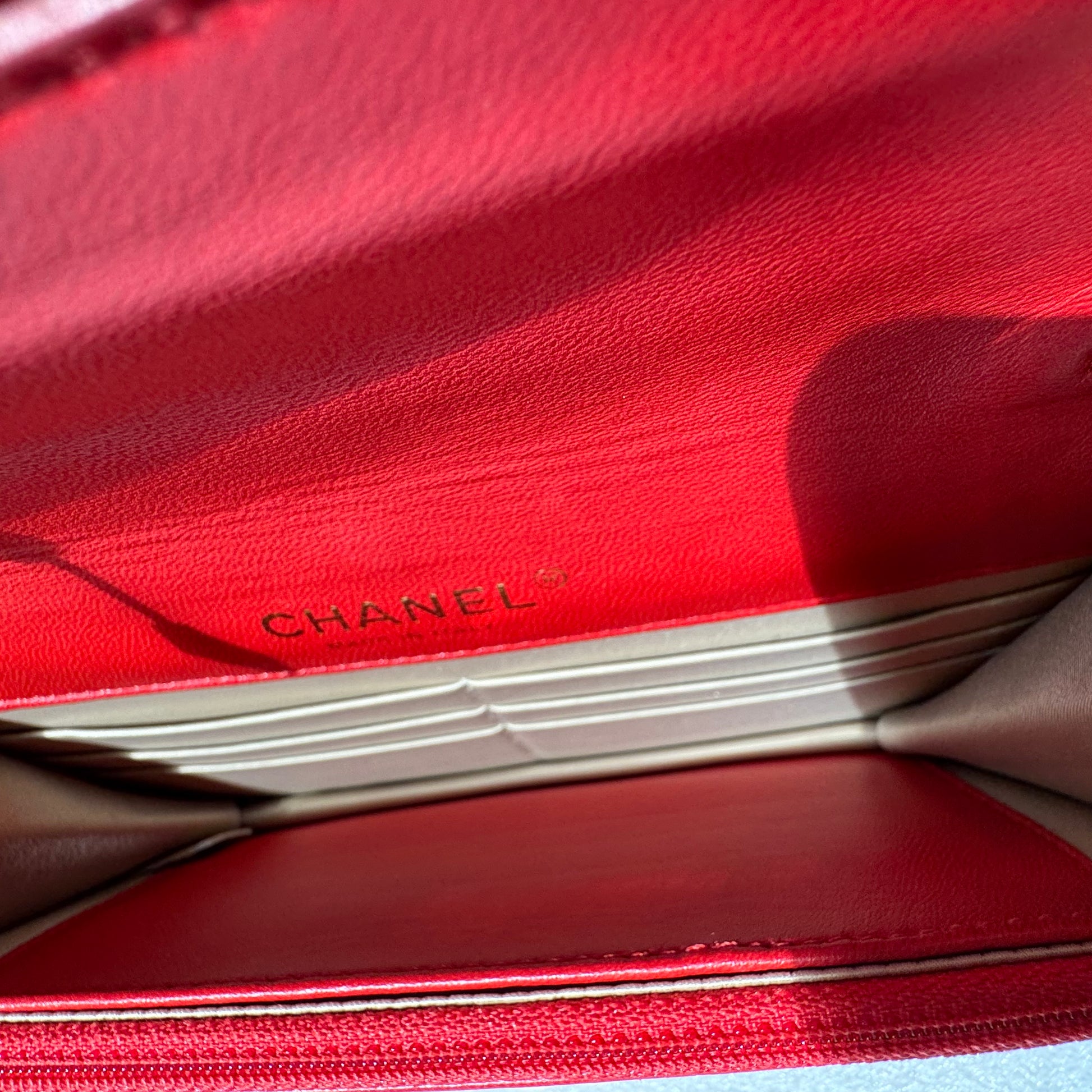 CHANEL large CC Logo clasp quilted red leather crossbody bag