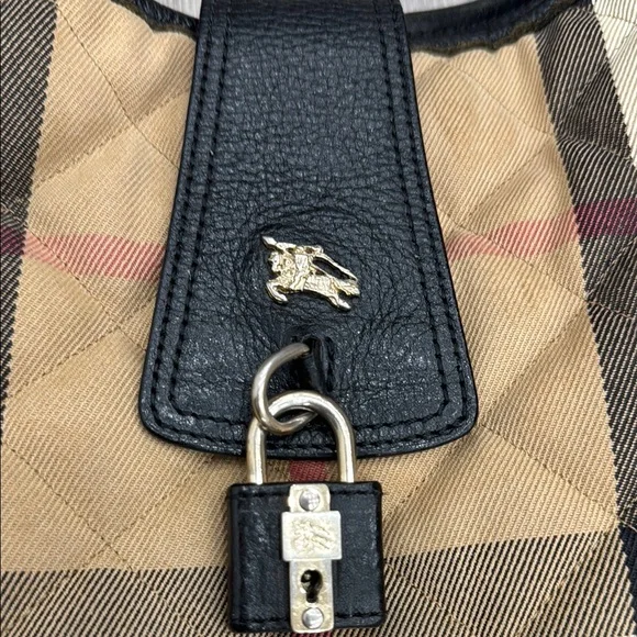 Burberry Tan and Black Shoulder Bag with Iconic Check Pattern
