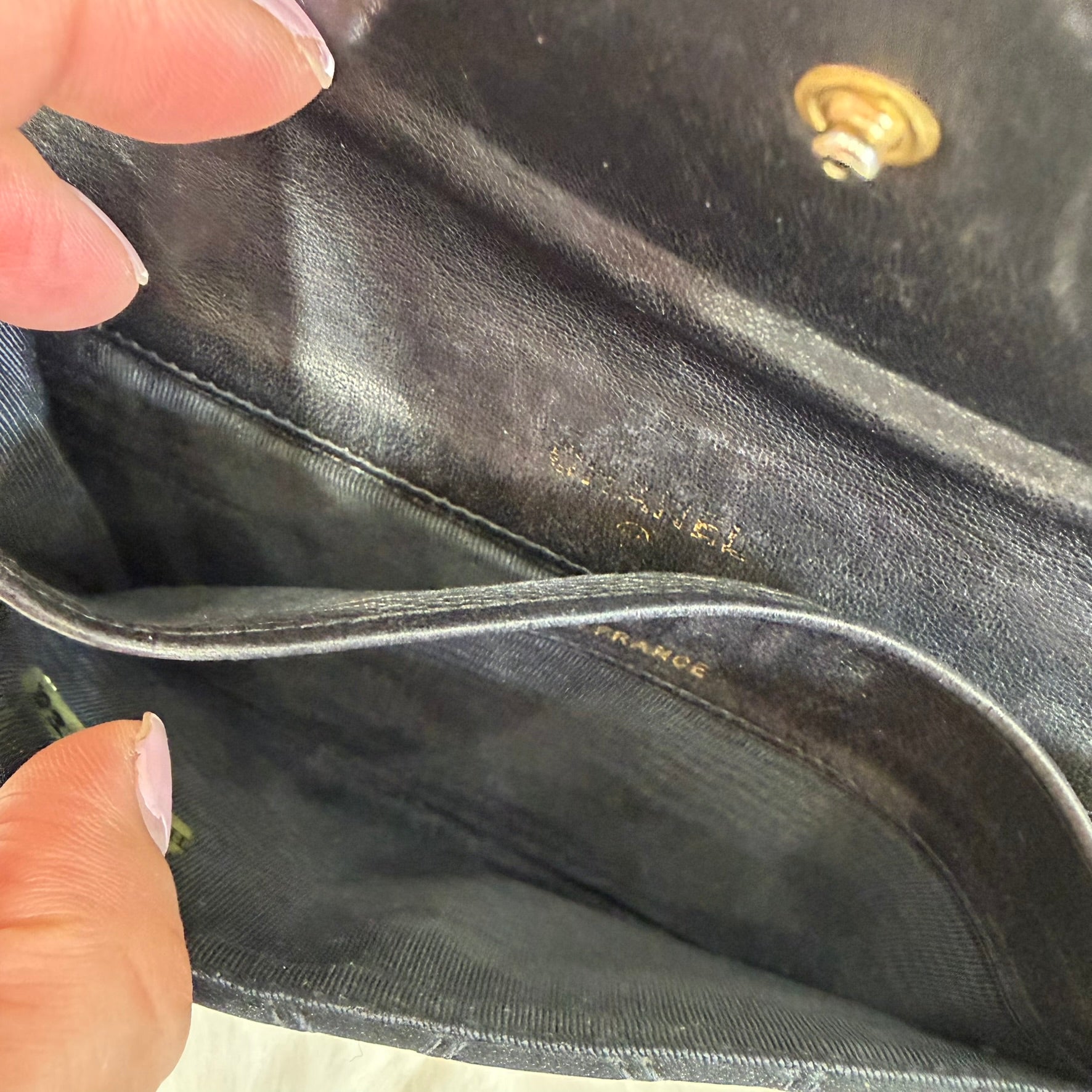 This Preloved Chanel Black Fabric CoCo Mark Wallet embodies understated luxury with its sleek black fabric construction and the iconic CoCo Mark emblem. Designed for both elegance and functionality, this wallet offers a refined way to organize essentials, making it a timeless accessory for sophisticated styling.