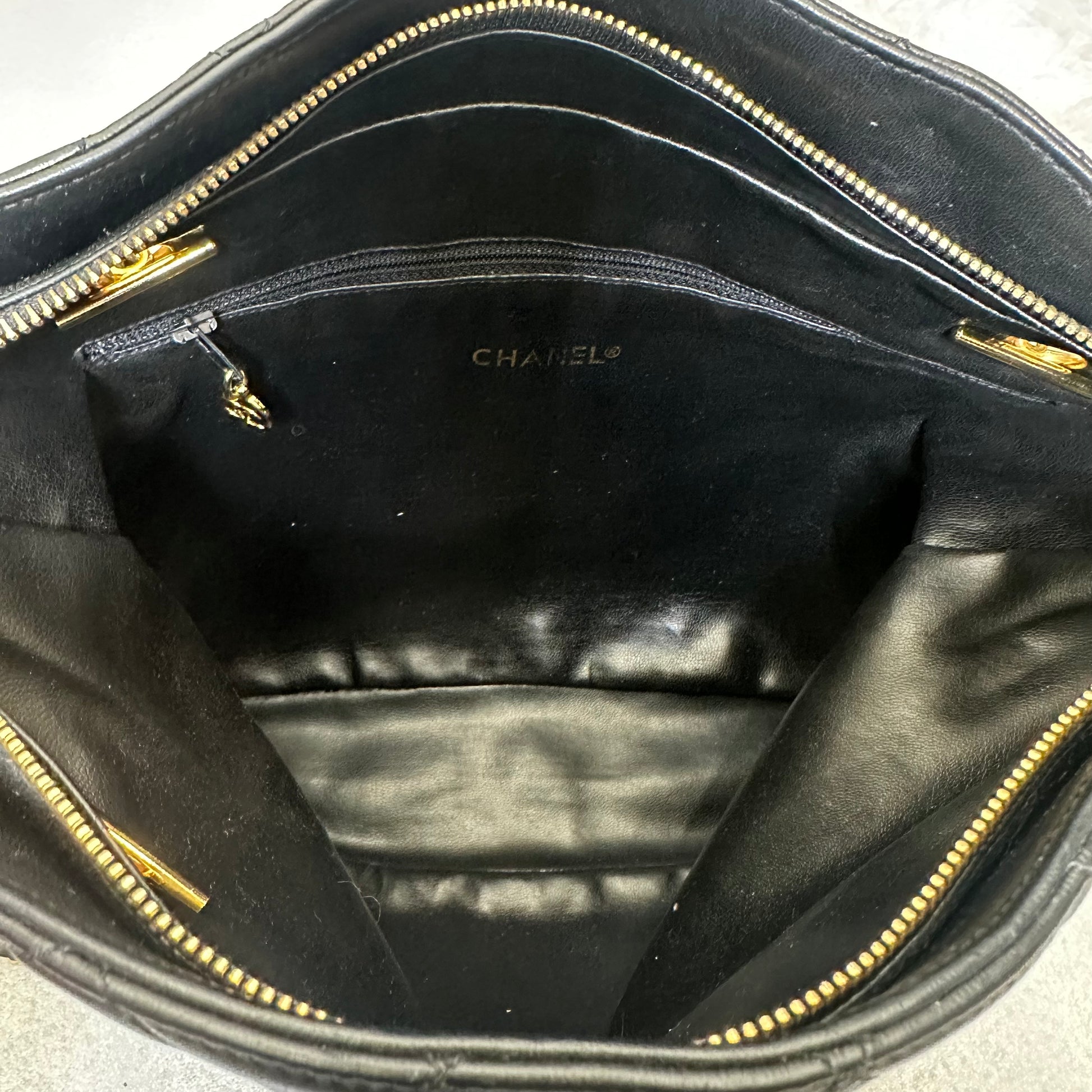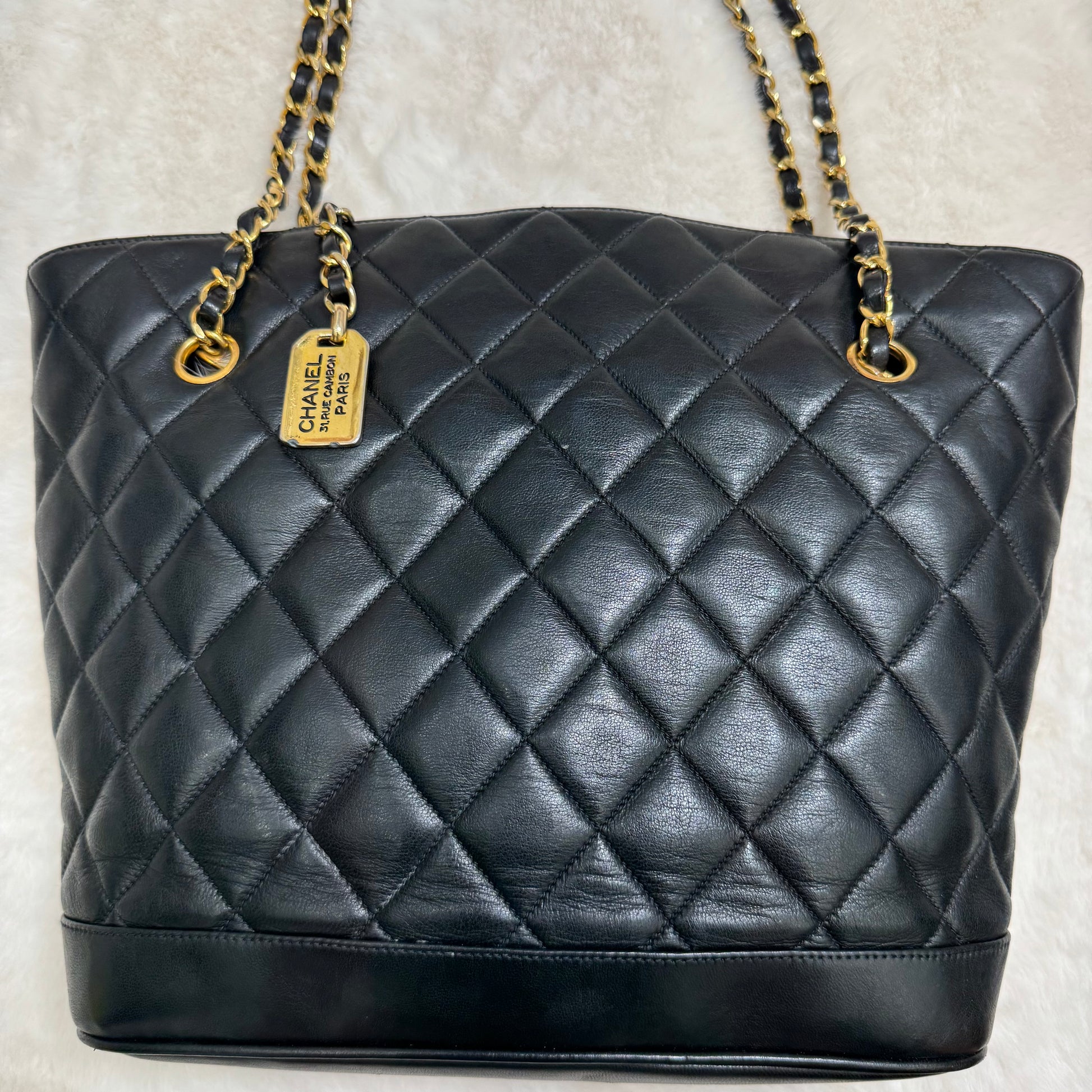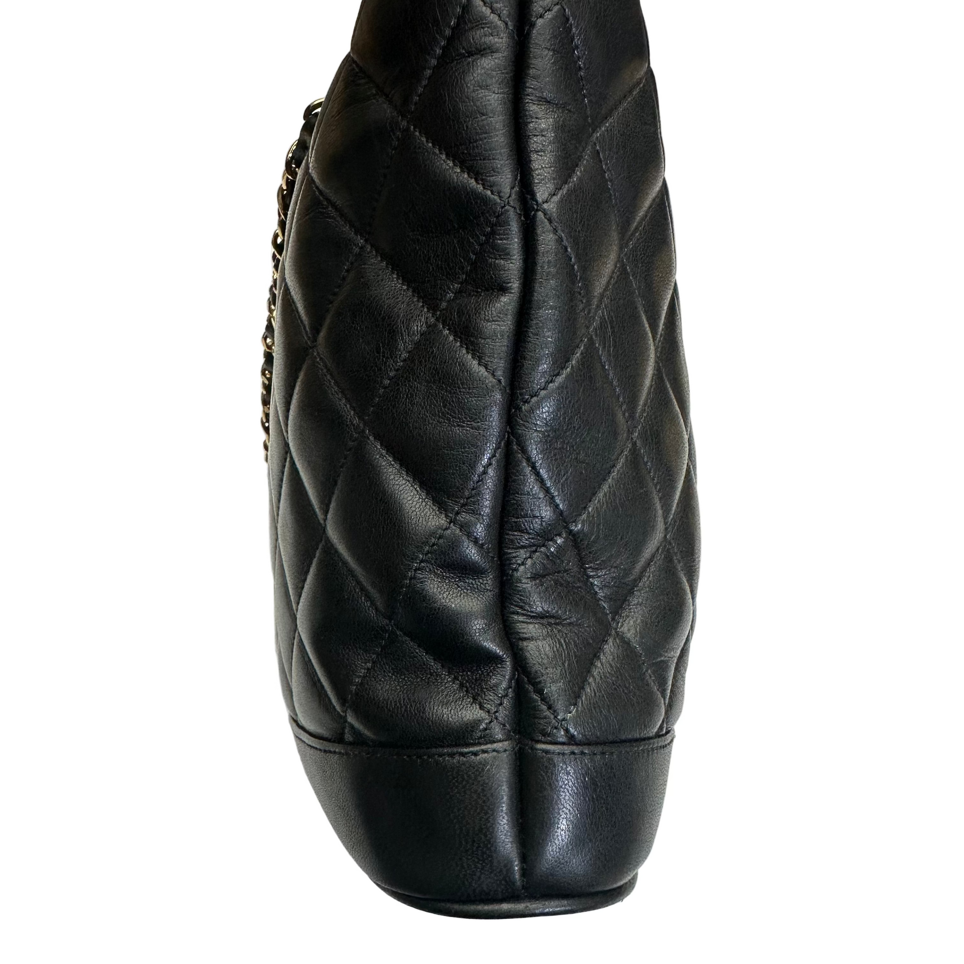 CHANEL Black lambskin Matelassé Medium Tote/Shoulder Bag