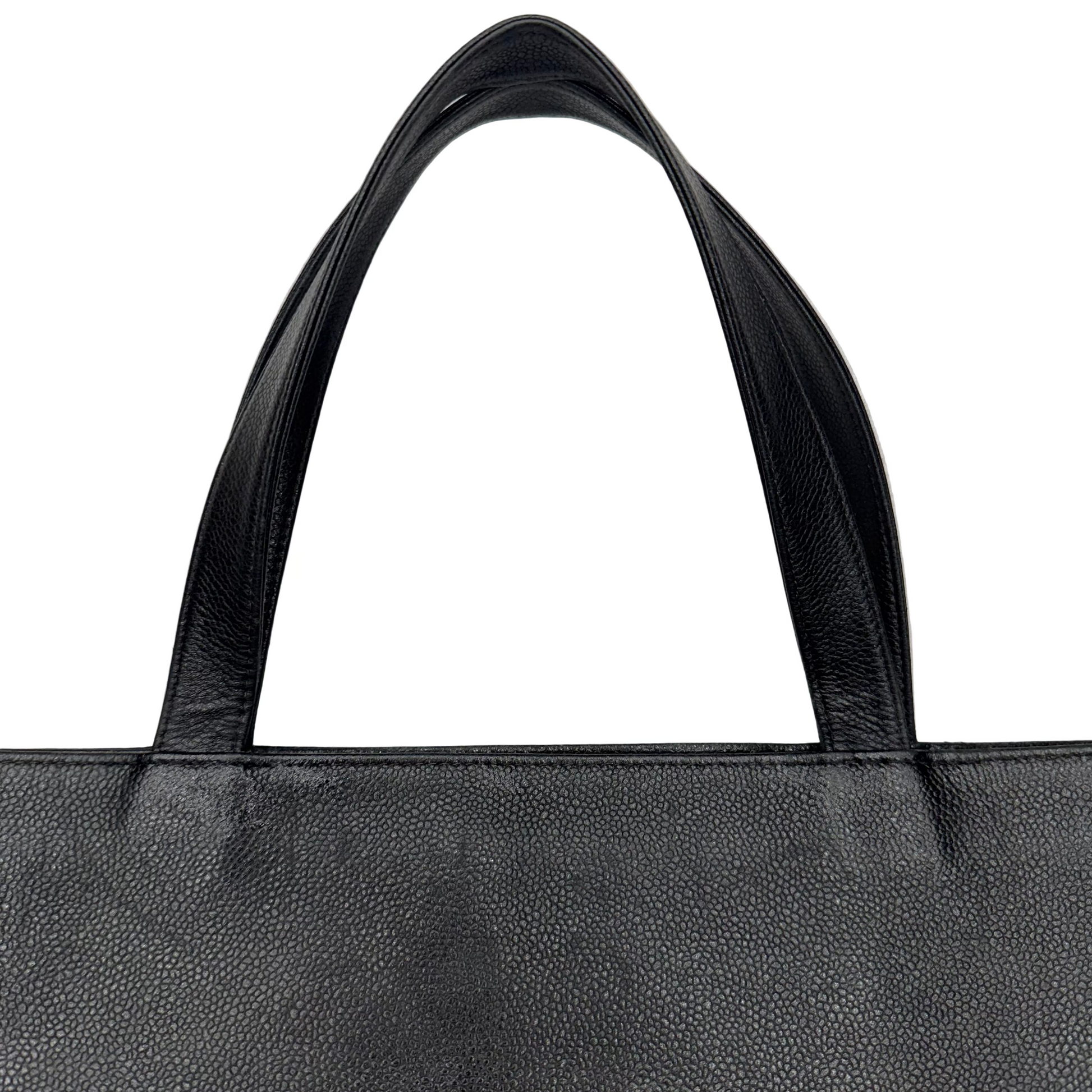 This Preloved CHANEL Black Caviar Leather Shoulder/Tote Bag combines timeless style with durable craftsmanship. Its textured caviar leather offers resilience and a refined look, while the versatile shoulder and tote design provides practical elegance for everyday use. This bag is a sophisticated choice, easily elevating any ensemble with understated luxury.