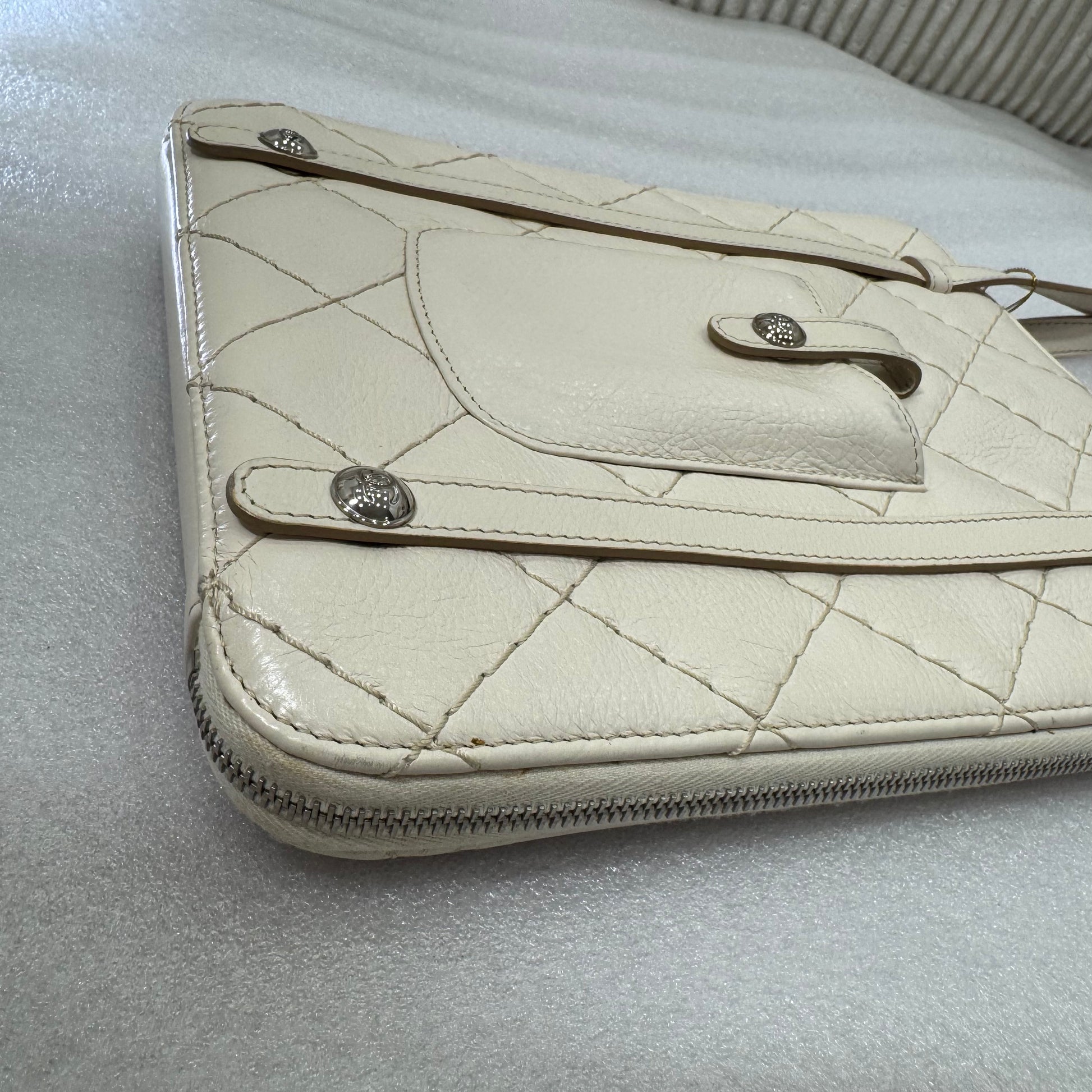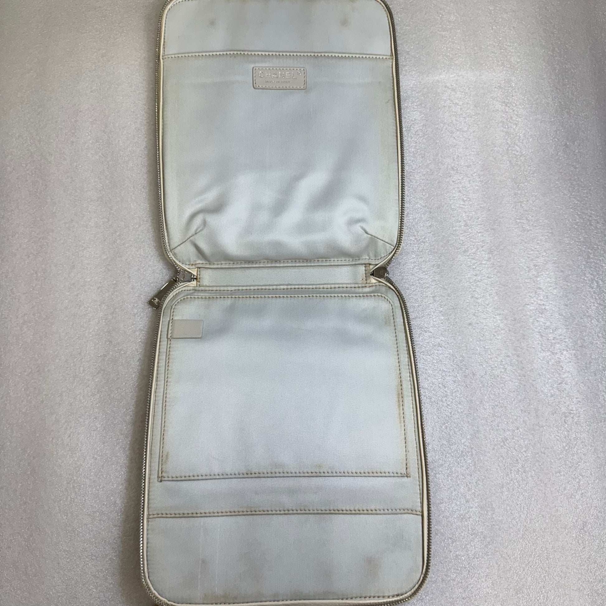 Designed for elegance and protection, this preloved CHANEL White Caviar Leather iPad Case combines luxurious caviar leather with meticulous craftsmanship. Its refined white finish adds a touch of sophistication, while the durable material safeguards your device from everyday wear. This sleek case offers a seamless blend of style and practicality, perfect for those who value both fashion and functionality.