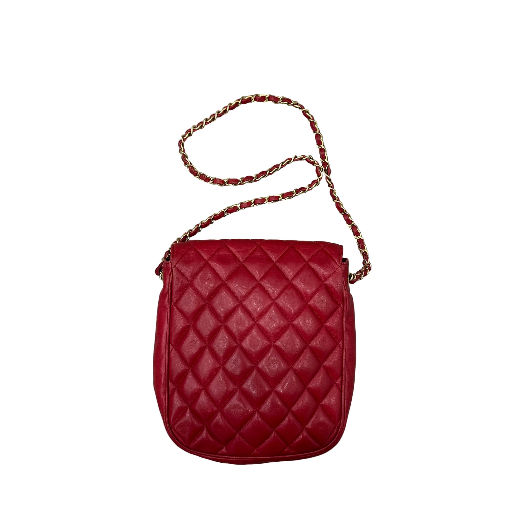 Chanel Red Lambskin Matelasse Crossbody Bag