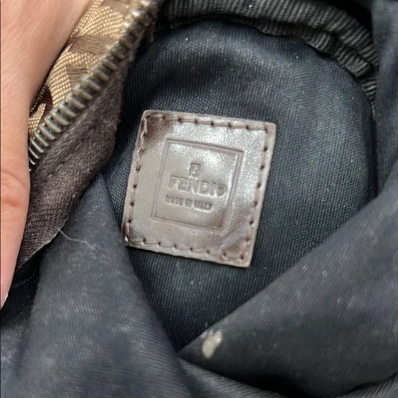 This Fendi shoulder bag showcases a sophisticated blend of brown and black tones, highlighted by the iconic FF monogram pattern. Crafted with a structured rectangular shape, it features luxurious leather accents and gold-toned hardware, embodying timeless elegance and durability.