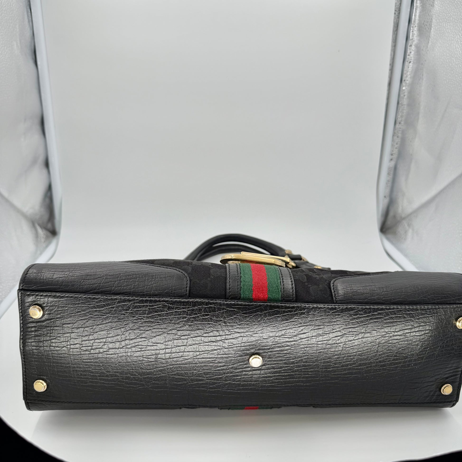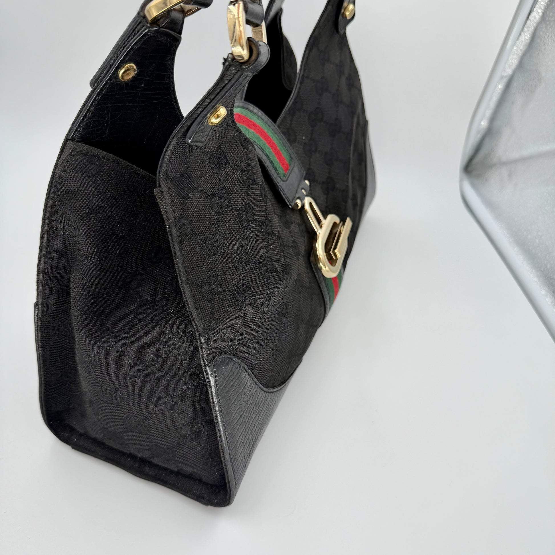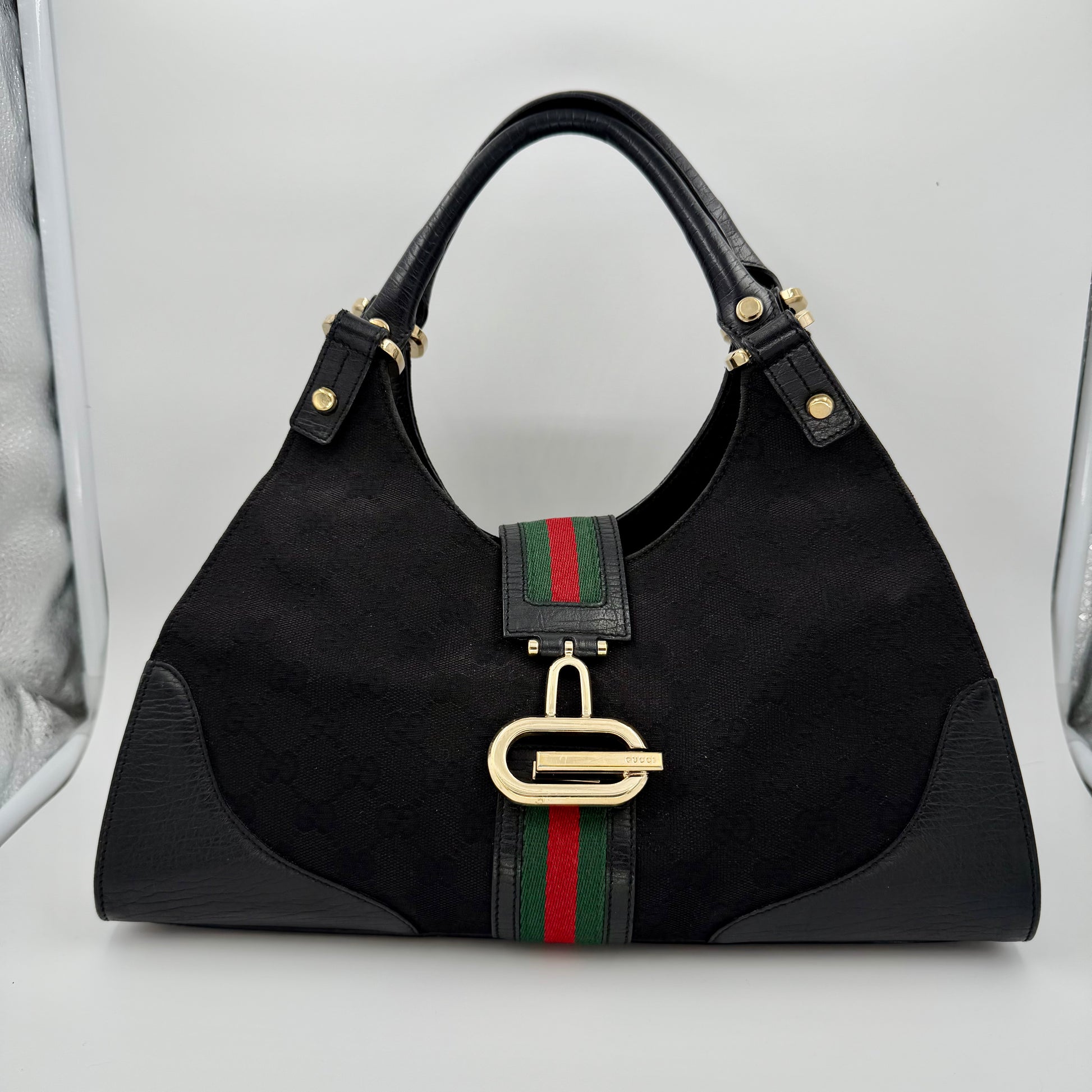 The Gucci Black Monogram Junco Shoulder Bag exudes refined elegance with its iconic monogram pattern in a sleek black finish. Designed for effortless sophistication, this preowned piece offers a versatile shoulder strap and a compact silhouette, perfect for elevating both everyday and evening ensembles. A timeless accessory that combines heritage craftsmanship with modern style for discerning fashion enthusiasts.