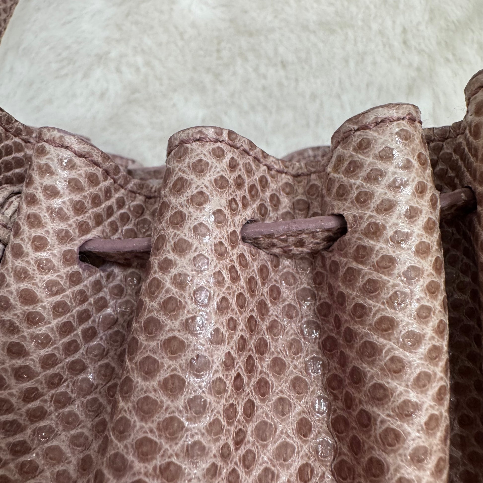 Refined and compact, the Gucci Pink Mini Bucket Crossbody Bag is an elegant accessory crafted for those who appreciate subtle luxury. Its delicate pink hue and sleek drawstring closure combine practicality with a refined aesthetic, making it perfect for effortlessly elevating any ensemble. The compact size ensures convenience, while the crossbody design offers hands-free grace throughout your day.